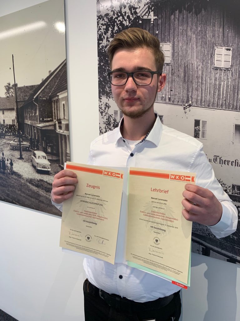 Die Firma Gadermeier gratuliert Manuel Lorenzato recht herzlich zur Lehrabschlussprüfung „mit Auszeichnung“.